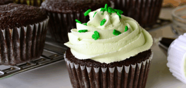 Pipe or smooth onto the cupcakes and decorate with green sprinkles.