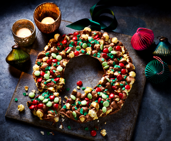 Sweet and salty toffee popcorn loaded with milk chocolate, green and red chocolate beans and green Christmas trees. Available from M&S stores nationwide.