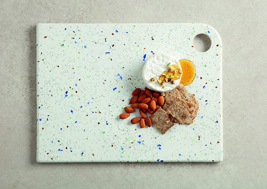 The foodie in your life will love this colourful terrazzo board by Maxwell Williams. The stunning surface appearance makes this terrazzo serving platter perfect for sharing food. Small specks of earthy tones and marine blue, turquoise and soft grey embedded in white stone set this serving board apart. The surface is durable and stays cool, so this platter is ideal for presenting cheese, fruit and desserts. Buy from reuzi.ie here.