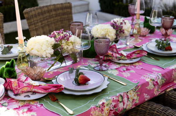 This beautiful collection is inspired by Spring and Summer, embracing garden flowers and its inner pink Goddess. Bringing our beautiful Herbariae dinnerware designed by French designer Christian La Croix and our beautiful pink floral tablecloth together.