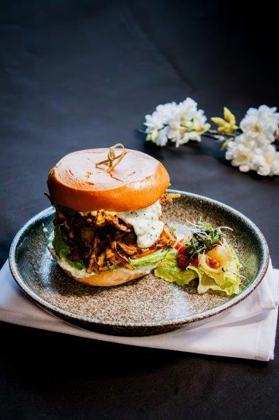The Bhaji Burger consists of two crispy onion bhaji’s, baby gem lettuce, beef tomato, vegan curry mayo, vegan mint & coriander yogurt all served on a vegan burger bun. For customers who aren’t vegan, there is an option to swap out a bhaji for a fillet of chicken perfectly marinated in tikka masala seasoning.