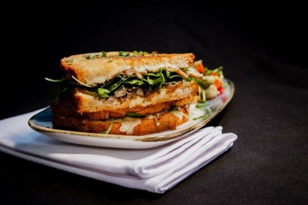 The unique and flavourful Wild Mushroom Melt is the ultimate bougie toastie. Packed with wild mushrooms sauteed in garlic and parsley, caramelised onions, rocket, vegan cheese and served with a side of parsnip crisps. For those who love cheese but don’t fancy meat, swap out the vegan cheese for Gruyère.