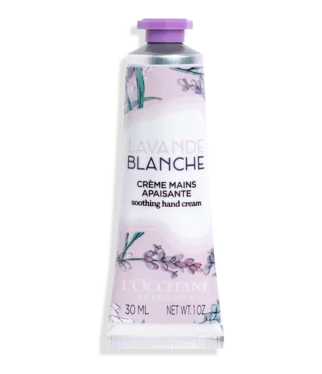 The White Lavender Hand C ream nourishes hands whilst leaving them delicately scented. Enriched with 100% Fair-Trade* sustainability sourced shea butter, essential oil of white and blue lavender, and sugar cane extract.