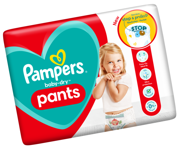 The new revolutionary pocket is available on Pampers Baby Dry diaper pants and Pampers Premium Protection and Night-time diaper pants.