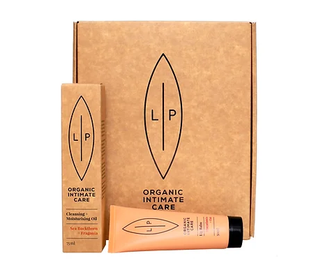 Vaginal dryness is one of the most common intimate issues. This ultimate wellness set is perfect for gentle intimate care. The Cleansing + Moisturising Oil with Sea Buckthorn + Fragonia leaves your vulva clean, moisturised and protected thanks to sea buckthorn, renowned for its healing and moisturising properties. The refreshing and emotionally balancing scent comes from fragonia essential oil which provides natural anti-bacterial and anti-fungal properties. The set also includes the Lip Intimate Care Lip Balm that gently moisturises, soothes and protects the vulva. Buy here.